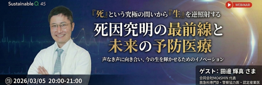田邊さんが目指すのは、死因究明のシステム構築と、そこから得られるデータを未来の予防医療に活かすイノベーション。「死から逆算して、今の生を輝かせる」——その視点は、医療の枠を超え、地域社会の安全や持続可能な暮らしの基盤にもつながります。